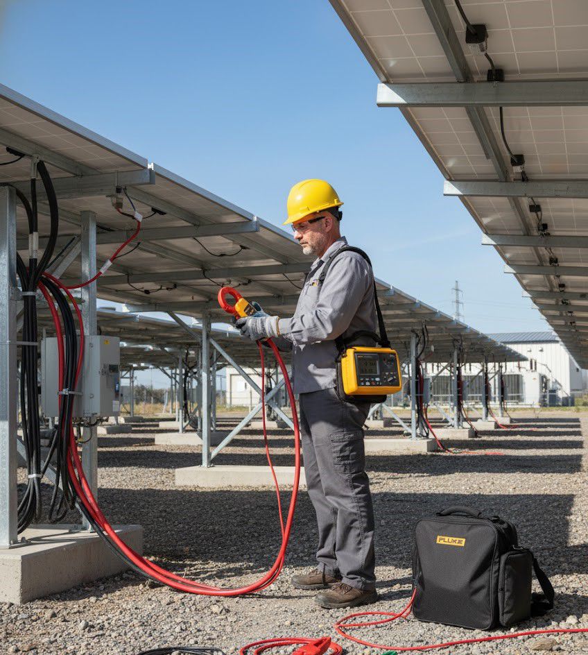 Với hệ thống pin năng lượng mặt trời, dòng rò lại là dòng DC. Khi đó, máy dò lỗi DC dùng cảm biến từ trường nhạy cao để phát hiện dòng rất nhỏ chạy từ dây xuống khung pin mà không cần cắt dây hay tháo tấm panel.